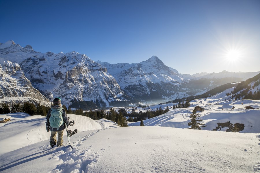 Grindelwald-First – stylisch, lebendig und ideal für sonnige Wintertage mit Aussicht.